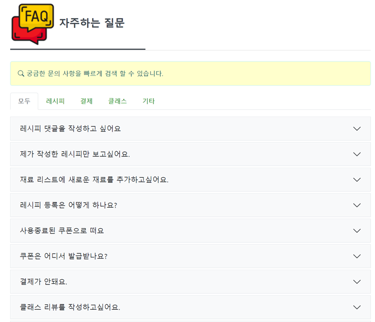 - ์ง๋ฌธ์ ์นดํ ๊ณ ๋ฆฌ๋ณ๋ก ๋ถ๋ฅํ์ฌ FAQ๋ฅผ ํ์ธํ ์ ์์ต๋๋ค.