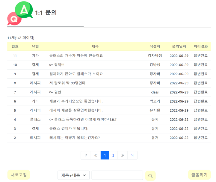 - ์ข์ธก ์๋จ ๋ฆฌ์คํธ ๋ฒํผ์ ํด๋ฆญํ๋ฉด ์คํ์บ๋ฒ์ค๋ฅผ ํตํด ์ข์์ํ ๋ ์ํผ, ํด๋์ค์ฃผ๋ฌธ/ํ๋ถ/ํ๋งค ๋ด์ญ ๋ฑ ๋ค์ํ ๊ธฐ๋ฅ์ด ์ ๊ณต๋ฉ๋๋ค.