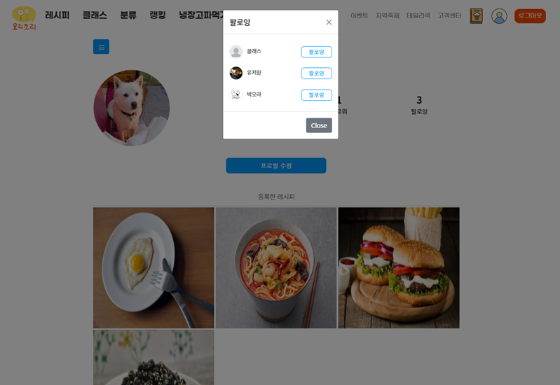 - ํ๋ก์์ ํด๋ฆญํ๋ฉด ์ฌ์ฉ์๊ฐ ํ๋ก์ฐํ ํ์ ๋ฆฌ์คํธ๋ฅผ ์ ๊ณตํฉ๋๋ค.
