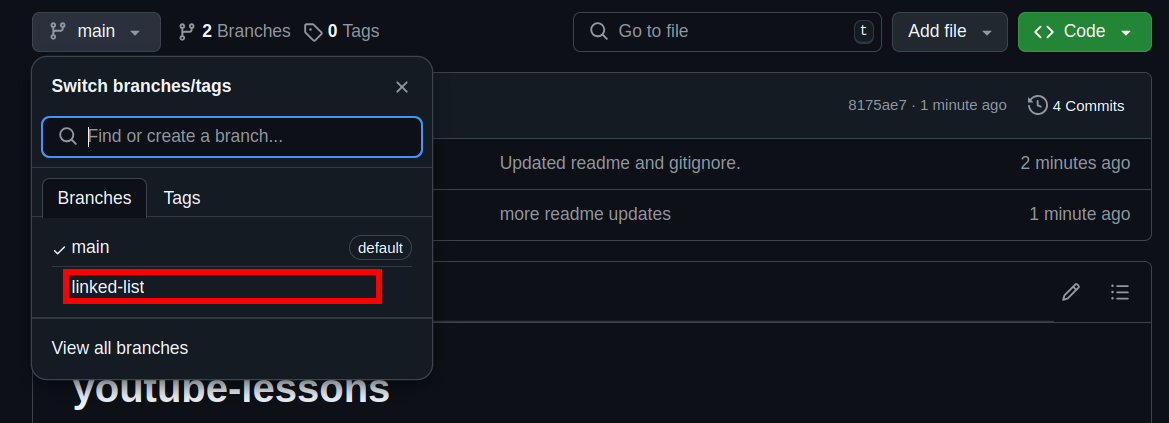 These are accessed in the Branches dropdown.