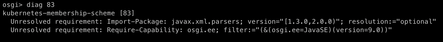The kubernetes-membership-scheme-1.0.8 bundle would not be resolved and show the following error.