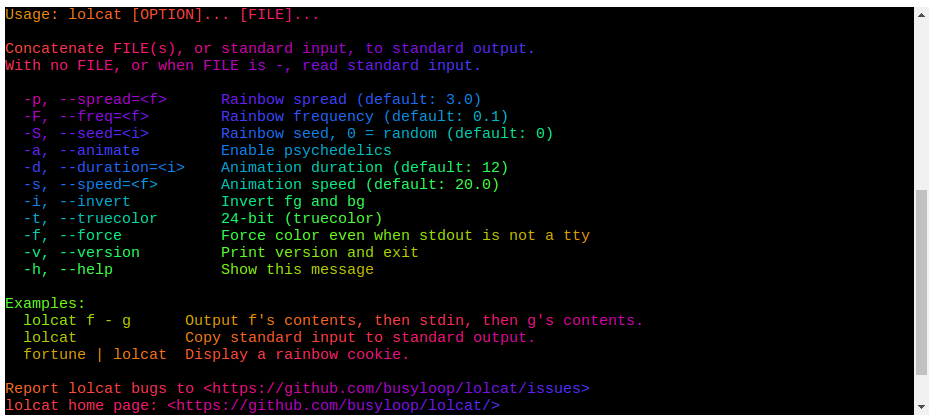 See https://github.com/busyloop/lolcat for demo (or charm.sh)
