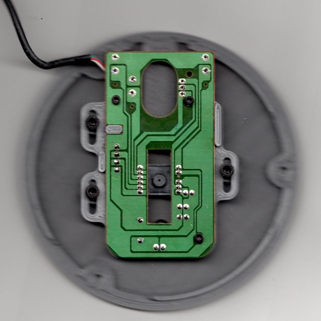 - Mount your PCB to the case to verify that you can get it at the correct position to track your ball accurately. You will need to make a custom mount (instructions below). You will most likely need to play with the height and position using the slotted holes and spacers.