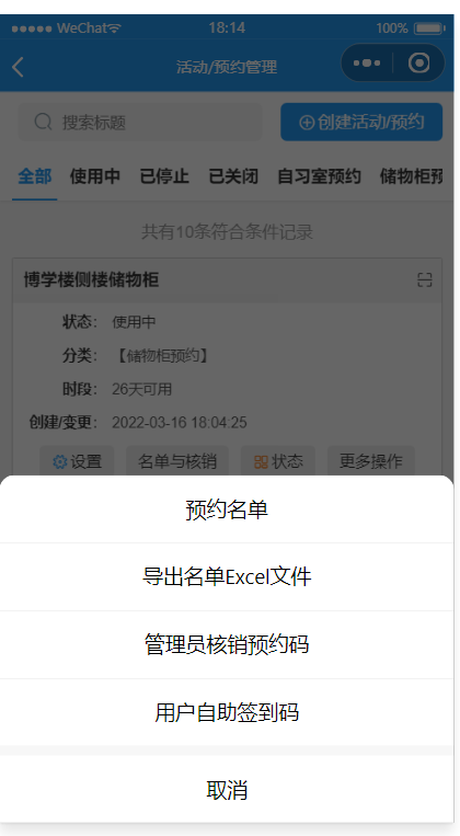 - 预约凭证:支持线下到场后校验签到/核销/二维码自助签到等多种方式