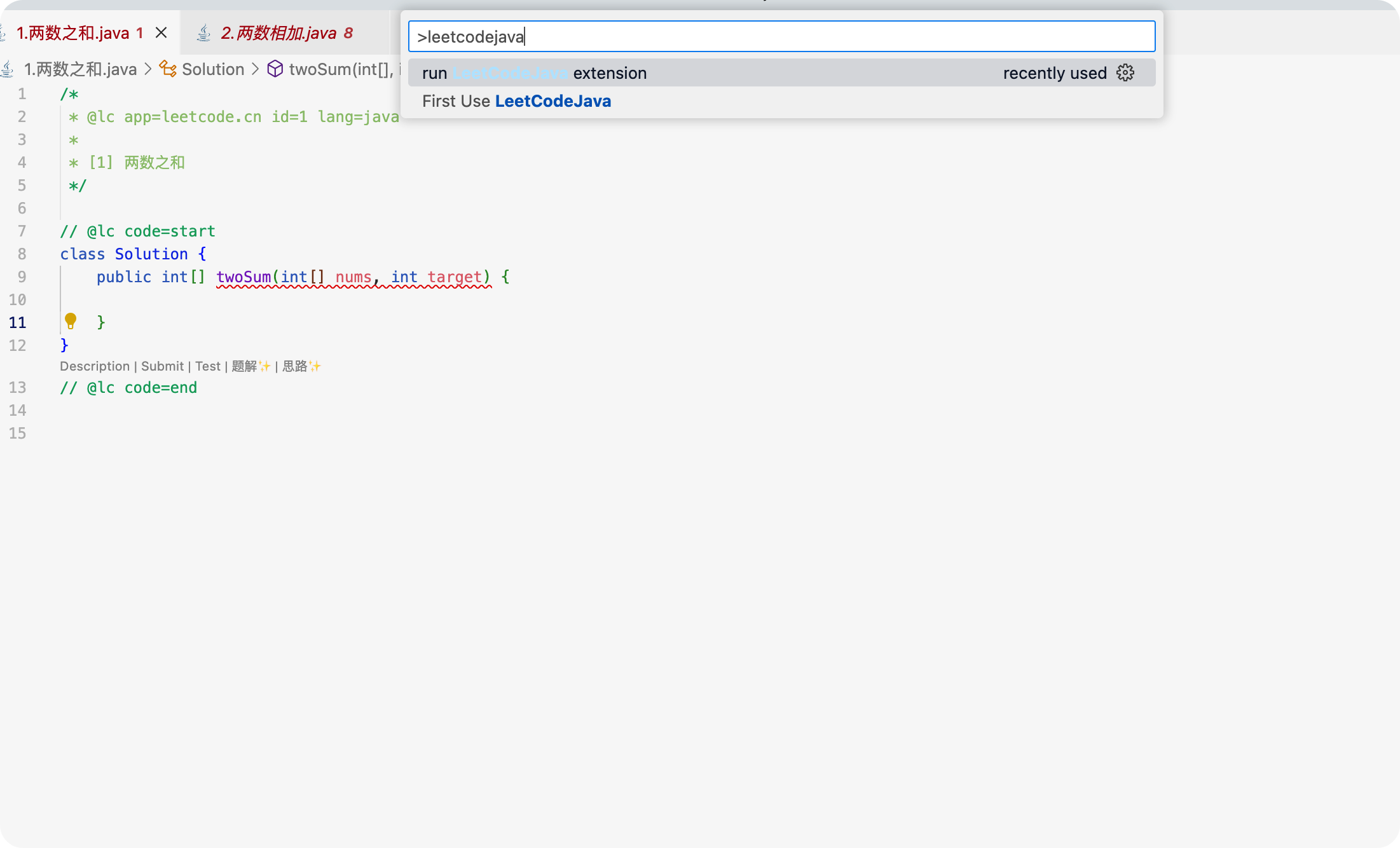 你好,按照流程启动插件后,只有两个命令,其他命令如LeetCodeJava.createFile等都没有。。。 <img width="1101" alt="image" src="https://user-images.githubusercontent.com/42695164/216222885-7dd727a8-bea3-4cec-9ceb-abfb7a3ed0f3.png">