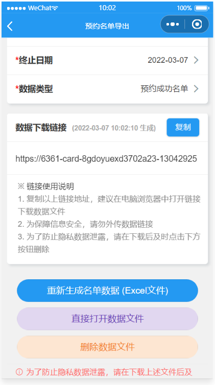 - 详尽的预约数据:支持预约名单数据导出Excel,打印