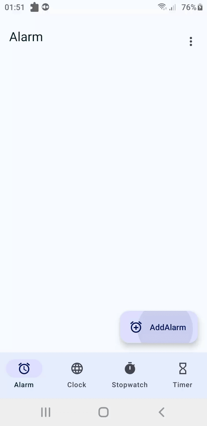 Presenting a clock app which was totally made in Jetpack Compose! You can use this app's timer and stopwatch functions, which are linked to workManager. The animation is added to the app to increase engagement. Also, you can create one time and recurring alarms and edit, enable, and disable them.