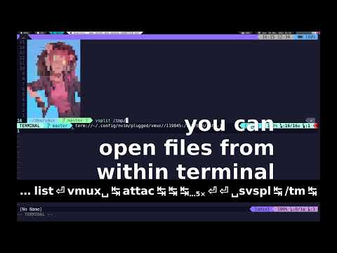 use { 'yazgoo/vmux', run = 'cargo install vmux' }Add the following to your .zshrc or .bashrc (replace <your_editor> with vim or nvim (default)).