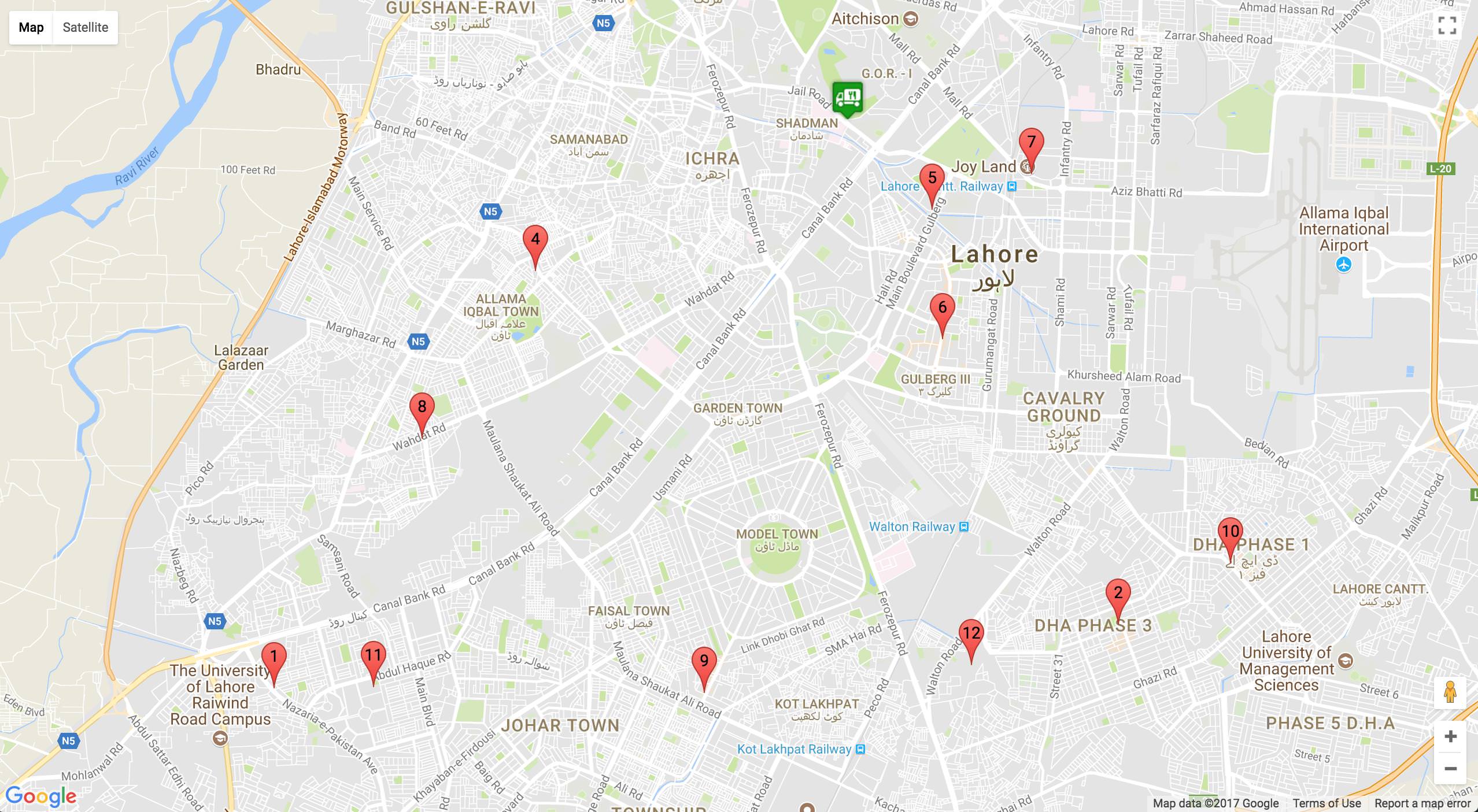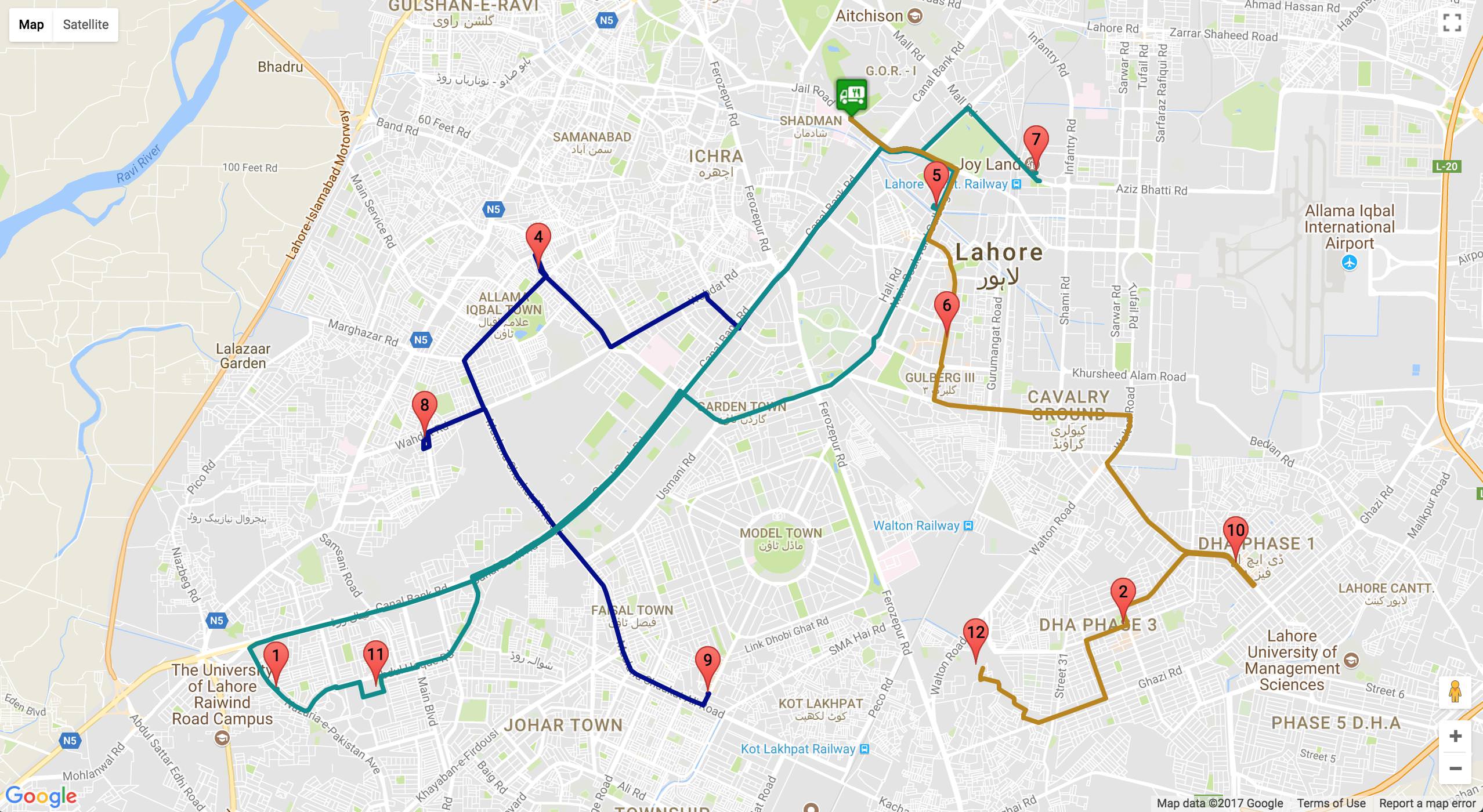 Here is a sample plot of the starting input locations resulting from search query McDonalds near Lahore with the truck icon showing the depot: