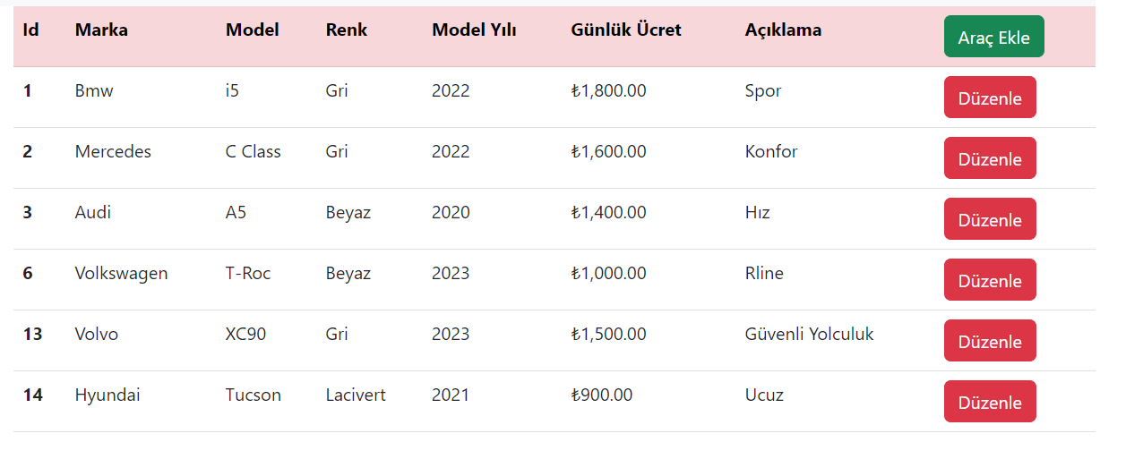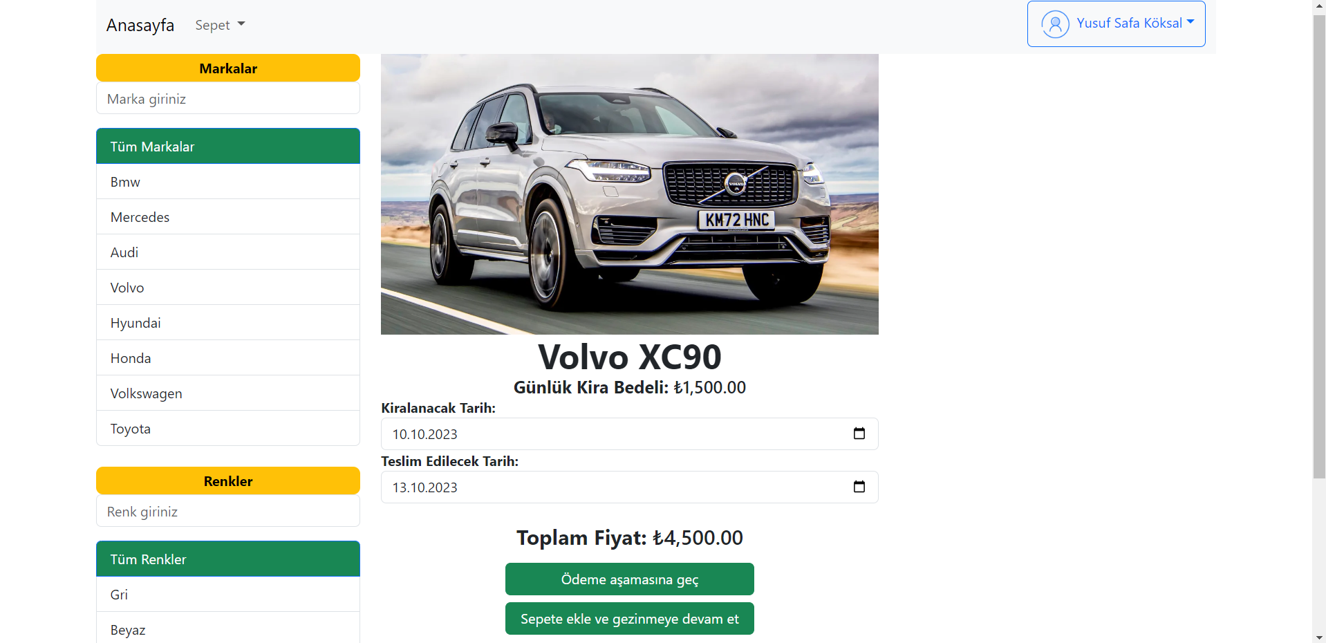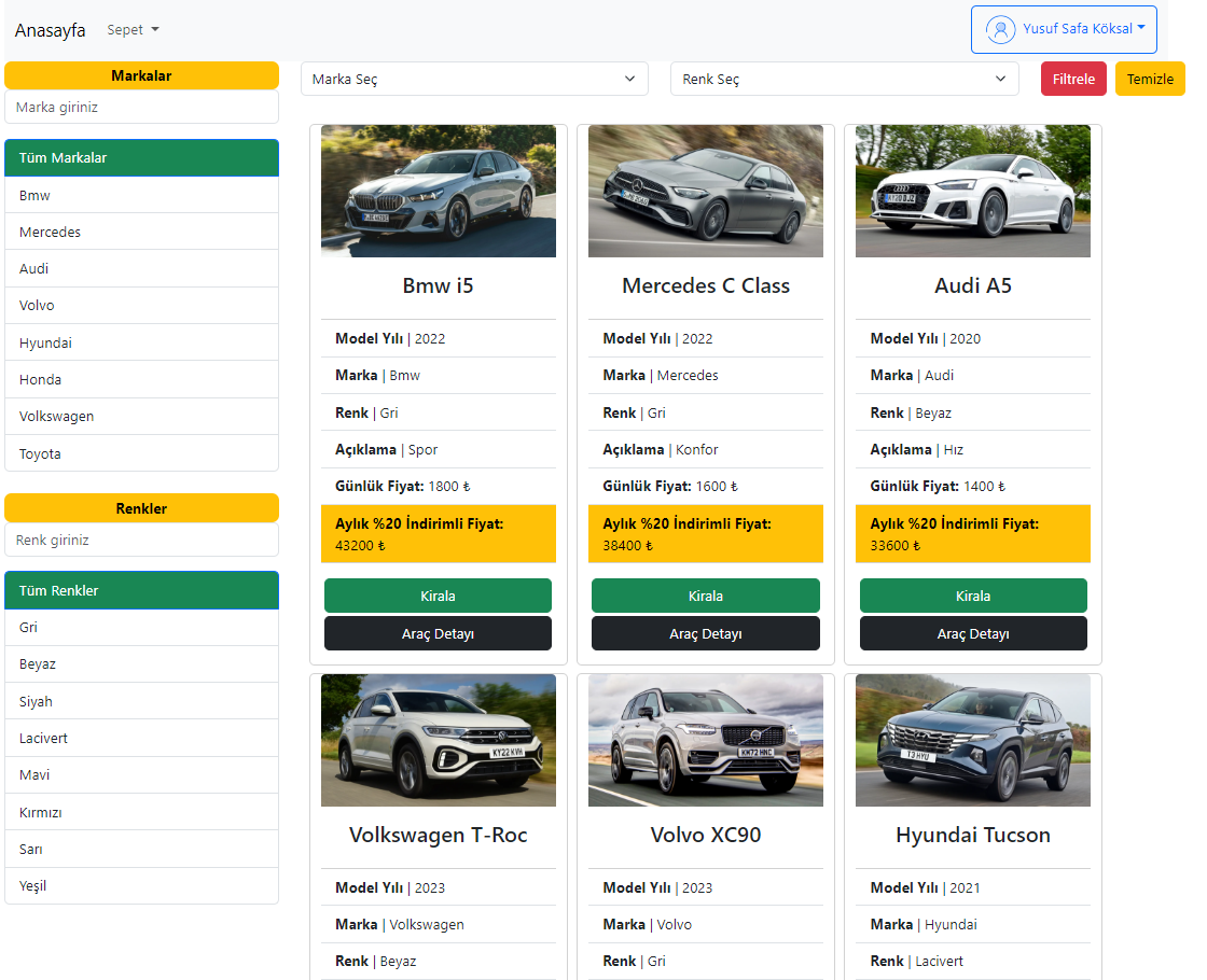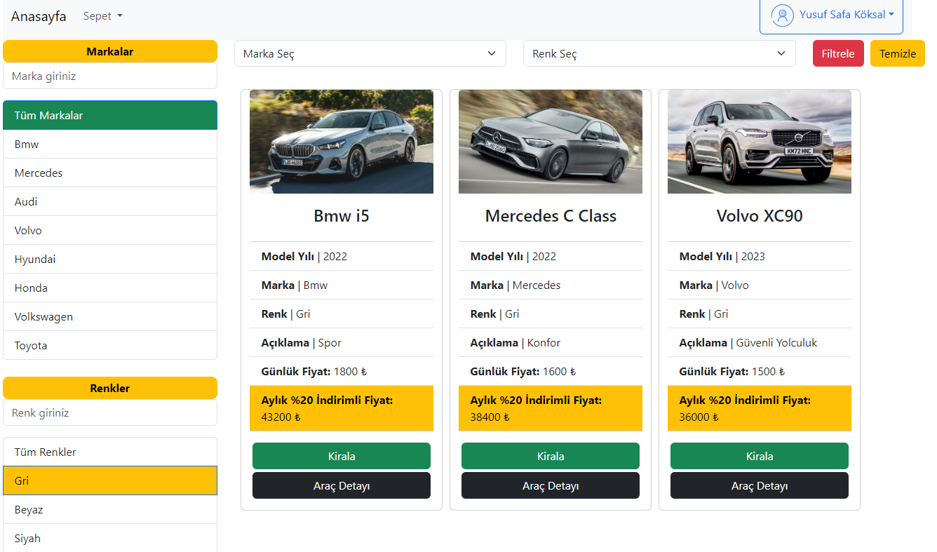 - While adding the vehicle to the cart, it is questioned whether the vehicle has been rented before and if the vehicle is suitable, it is added to the cart