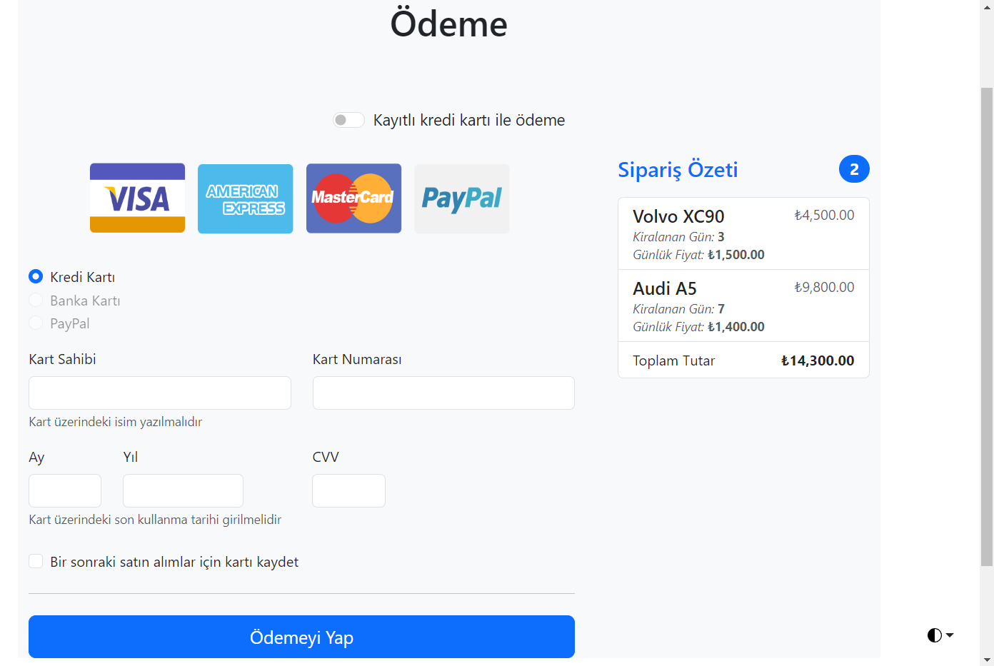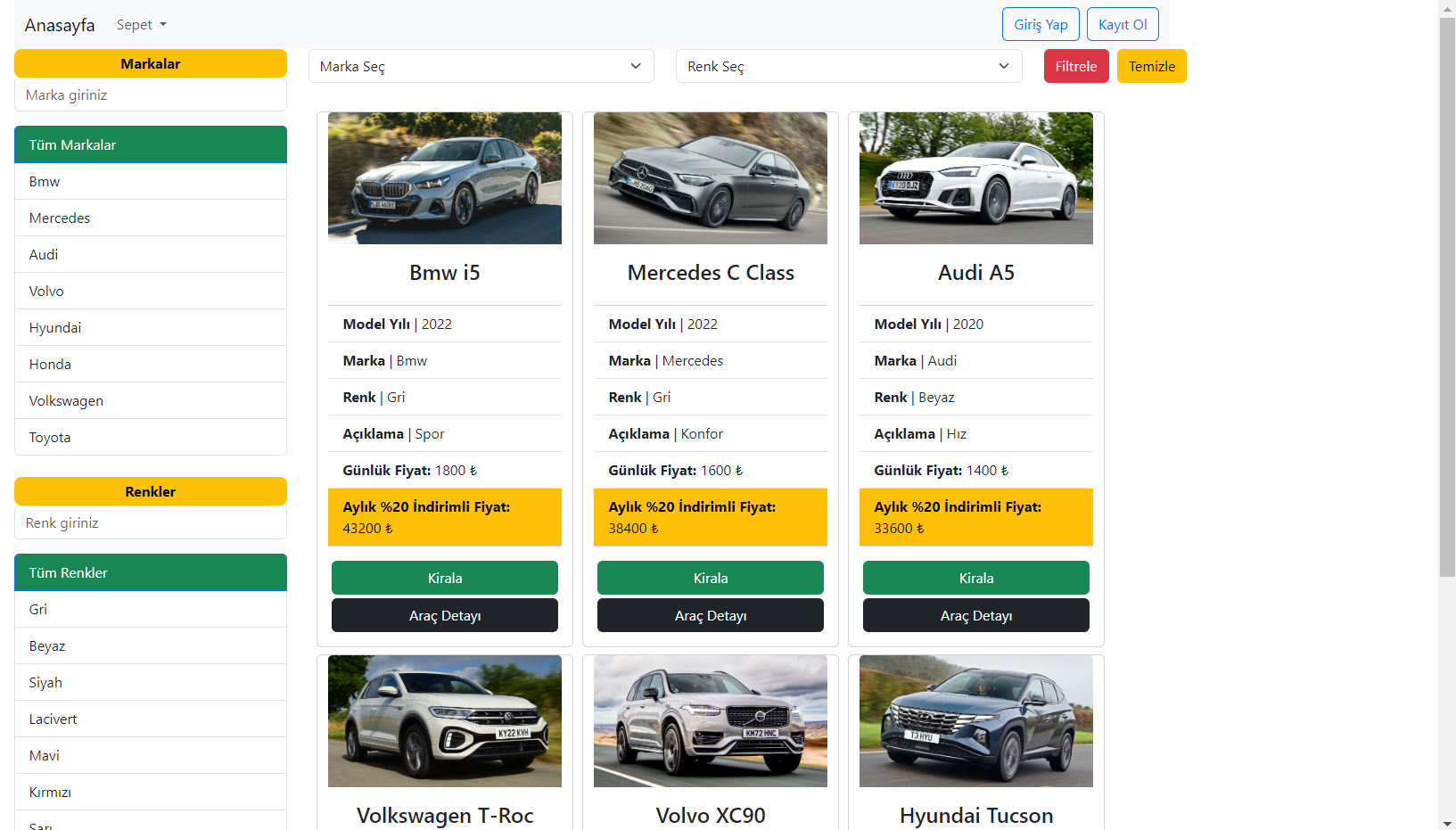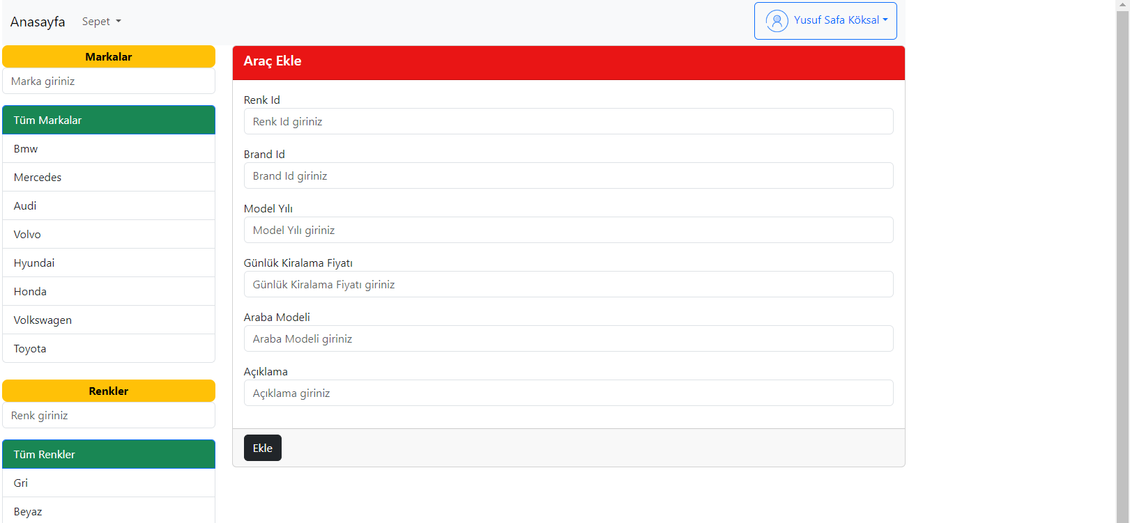 - While adding the vehicle to the cart, it is questioned whether the vehicle has been rented before and if the vehicle is suitable, it is added to the cart