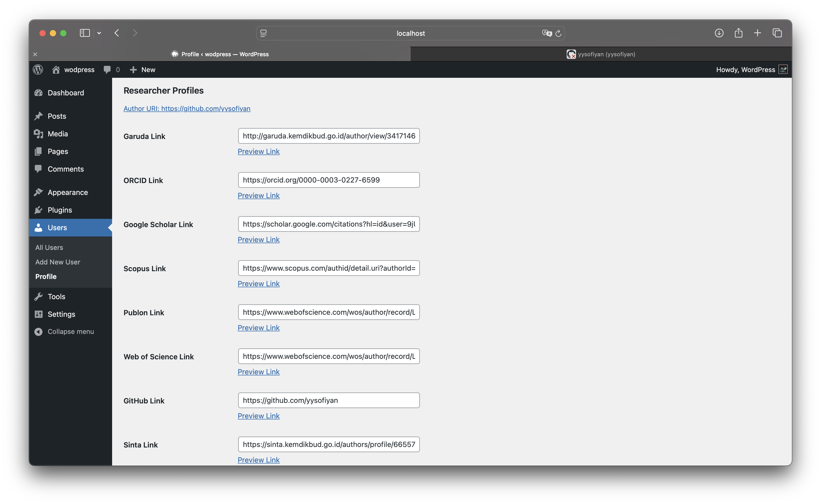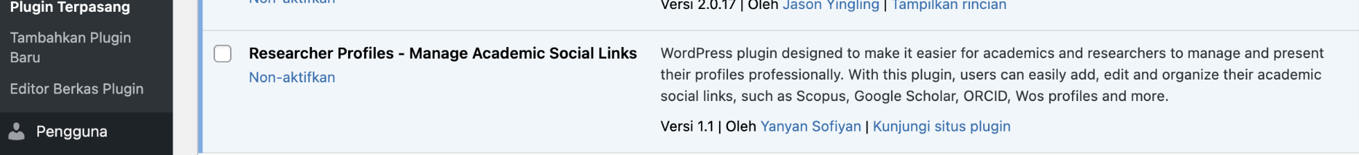 Researcher Profiles - Manage Academic Social Links is a WordPress plugin designed to make it easier for academics and researchers to manage and present their profiles professionally. With this plugin, users can easily add, edit, and organize their academic social links, such as Google Scholar, Scopus, ORCID profiles, and more.