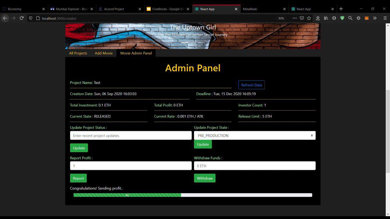 This DApp empowers you to steer and invest in various parts of the Film Production industry.