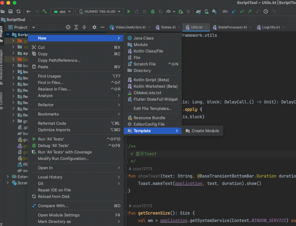 AndroidStudio模版插件 支持创建各种代码模版 目前主要针对 SycApp 工程结构进行开发 功能 快速创建Module 快速创建MVVM框架下的Activity(Activity+ViewModel+layout.xml) 安装 自行下载插件jar文件,本地安装 在插件市场搜索 TemplatePlugin 自行安装即可 使用