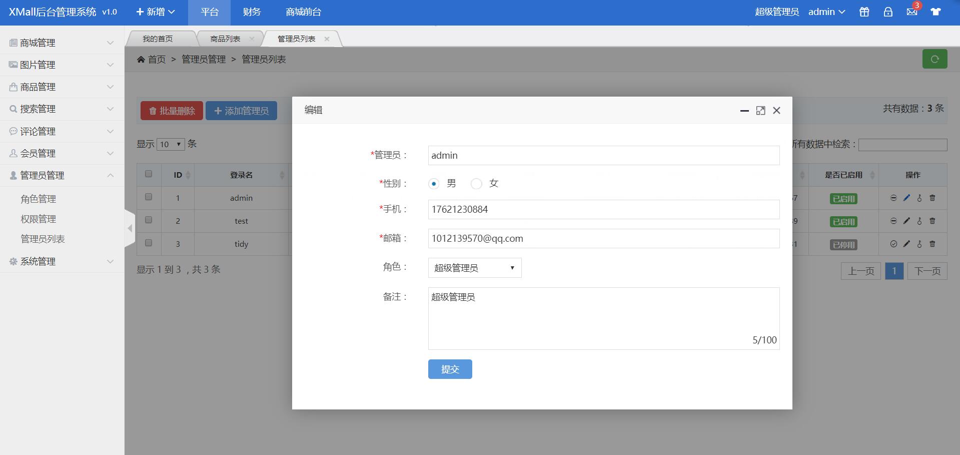 - 优化后台页面 修复用户修改BUG 优化批量删除 优化商品分类添加