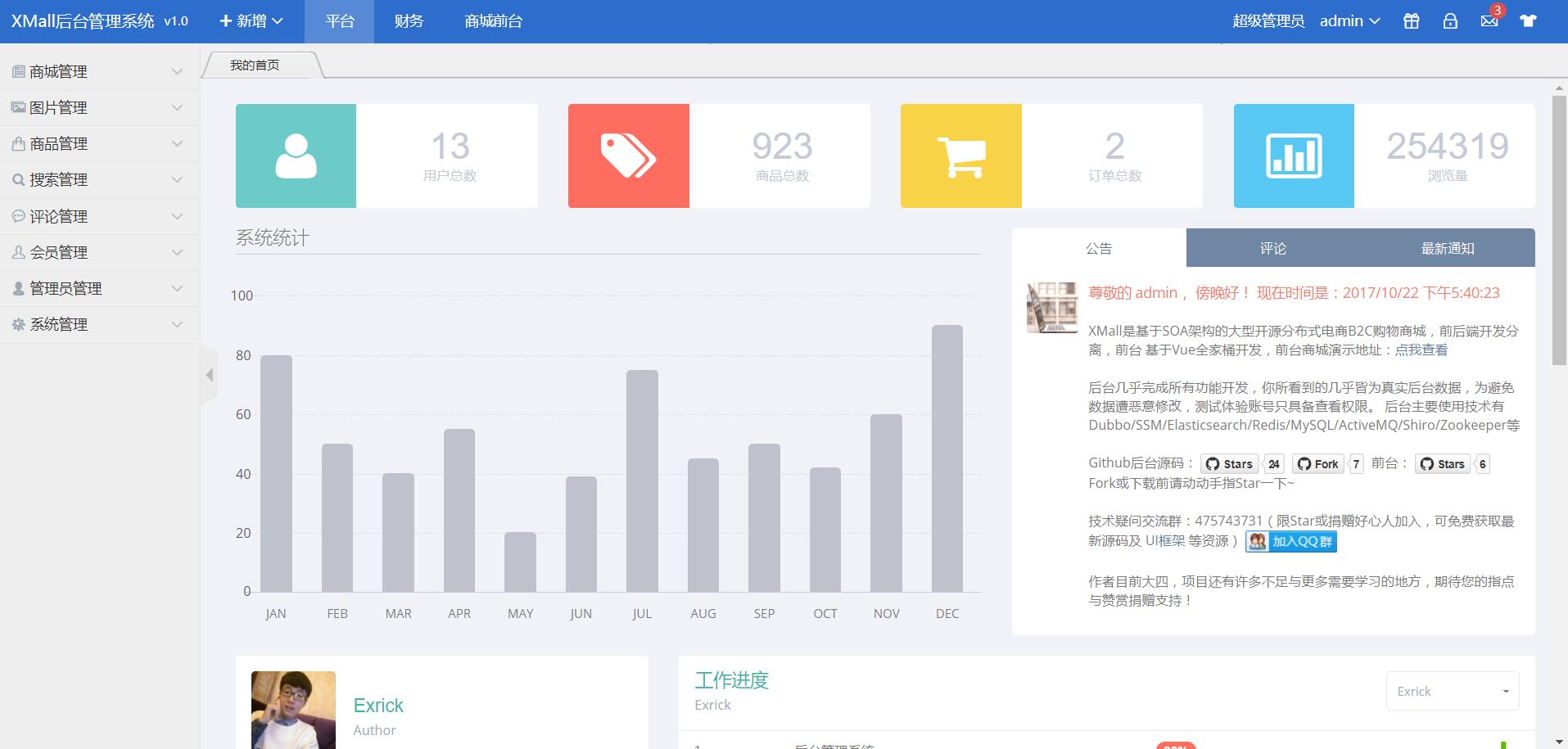 - 后台管理系统:http://xmadmin.exrick.cn/