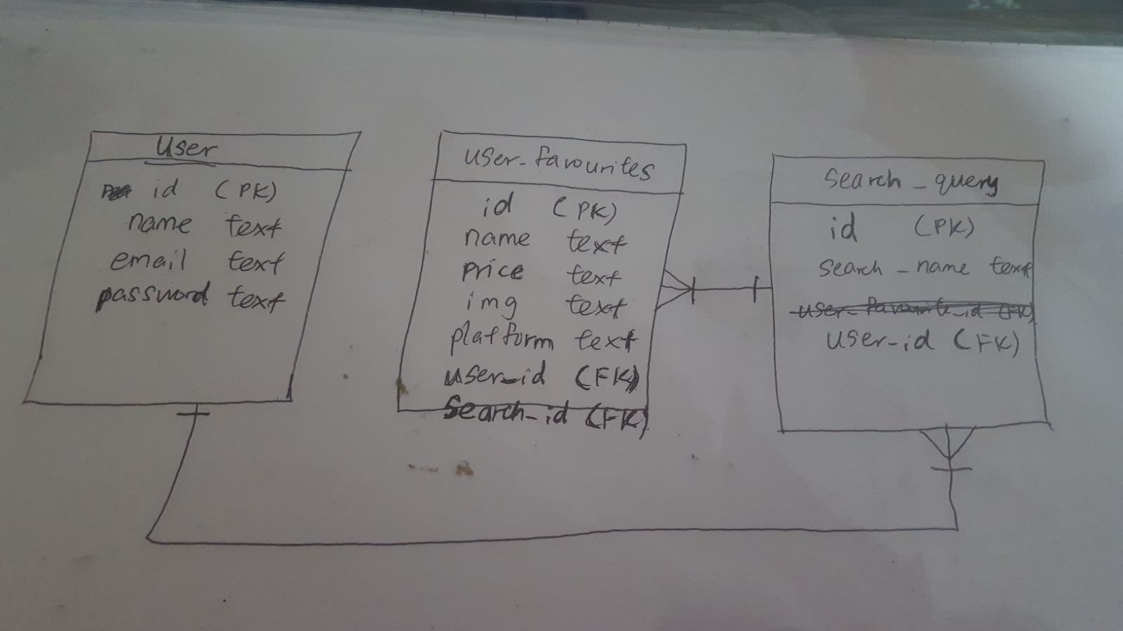 The following shows the relationships between the various database tables for this project.