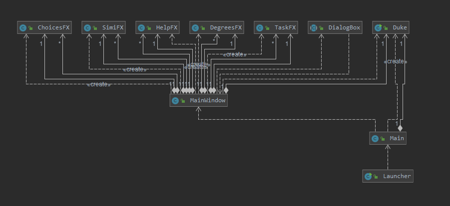 The UI consists of a MainWindow that is made up of parts e.g. tableView, tabPane etc. All these, including the MainWindow, inherit from the abstract UiPart class.